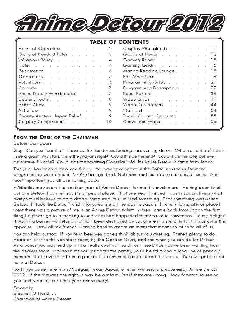 Anime Detour 2012 Program Book Pdf Cosplay Auction